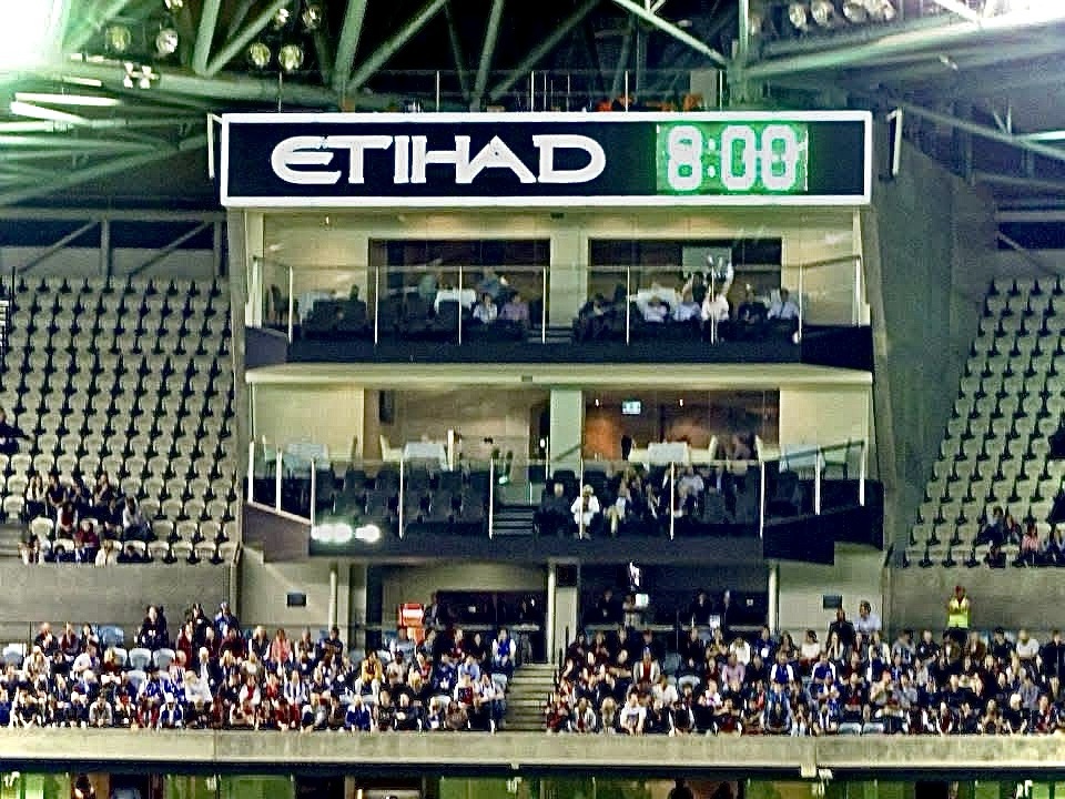 We’re suckers for live sports, so when the chance came to catch an Aussie Rules Footy match, we didn’t hesitate! We headed into Melbourne with Trent and met up with his mates at Etihad Stadium (now known as Marvel Stadium) for a night of fast-paced, high-flying action.
